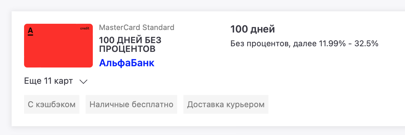Наведите мышь на боковую красную линию «Доступен кэшбэк» и увидите вознаграждение за оформление карты