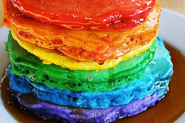 2. Блины разных цветов. Можно использовать натуральные красители (как свекла) или промышленные. Но сами по себе разноцветные блины - это уже необычный праздник для всей семьи.