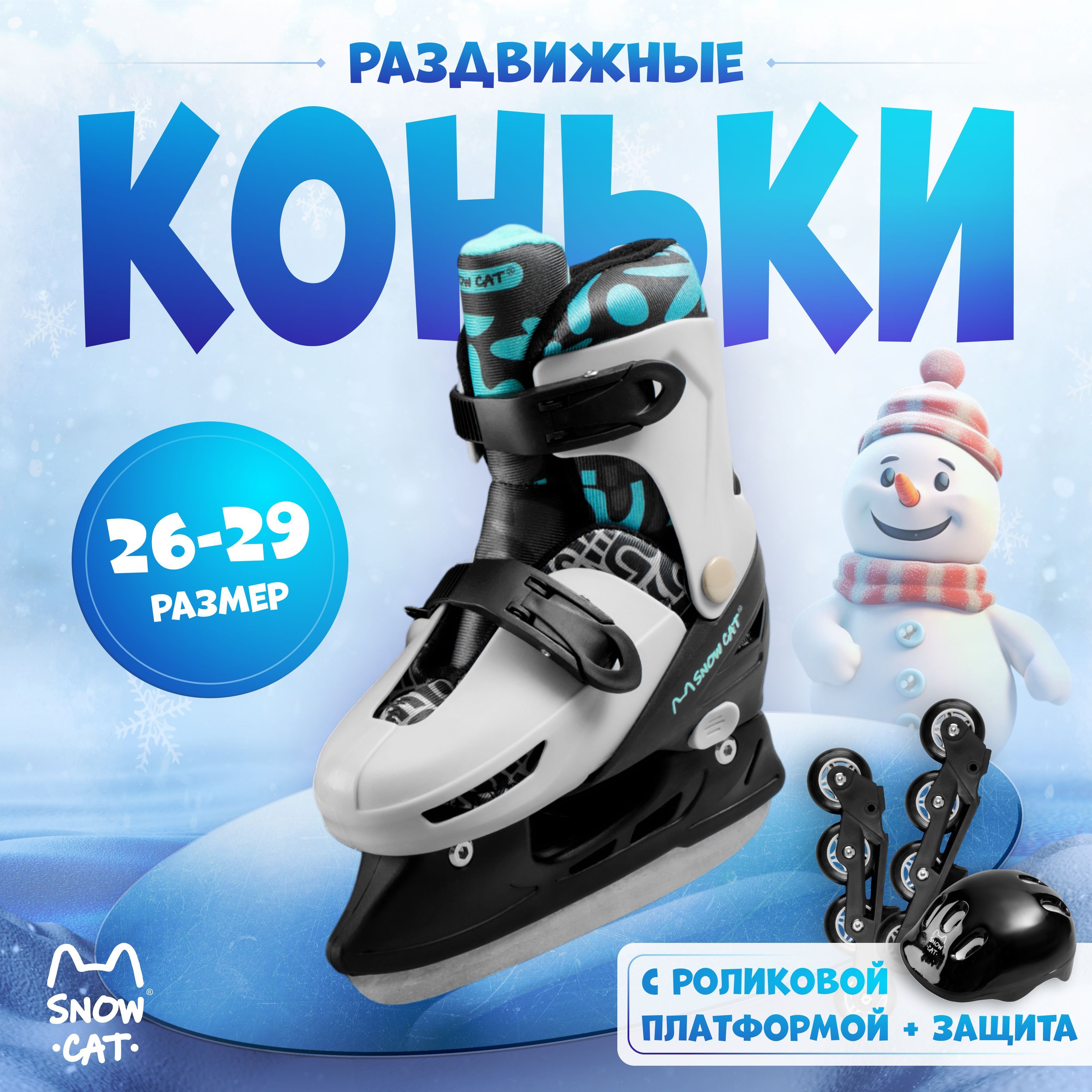 Коньки детские Snow Cat, раздвижные, набор с роликовой платформой, размер 26-29